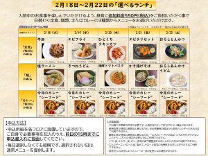 当院では入院中のお食事を楽しんでいただくために、定期的に「選べるランチ」を実施しています。