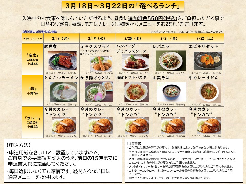 当院では入院中のお食事を楽しんでいただくために、定期的に「選べるランチ」を実施しています。