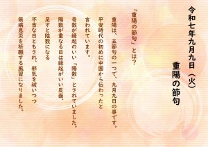 9月は「重陽の節句」。昼食をご紹介いたします。