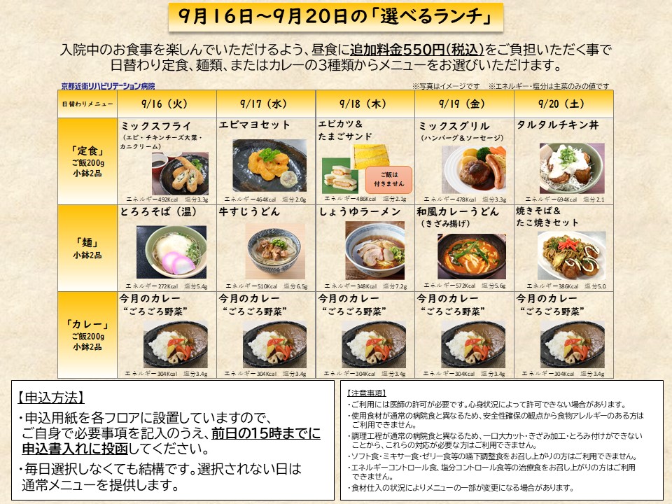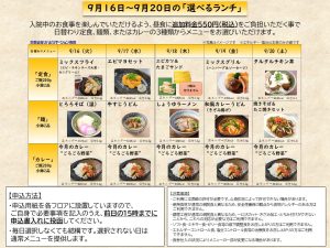 当院では入院中のお食事を楽しんでいただくために、定期的に「選べるランチ」を実施しています。